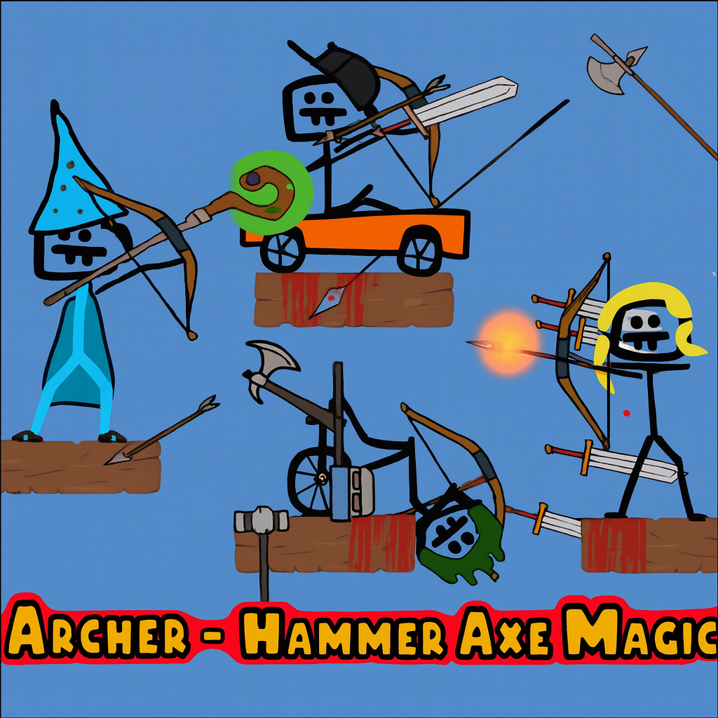 Archer - Hammer Axe Magic is an arcade action game that combines magic, melee weapons, and archery into a wild and exciting adventure. Players will take on the role of a skilled archer, who can attack enemies with fire arrows, axes, or magic staff. The game focuses on fast-paced combat, diverse weapons, and unpredictable physics.
