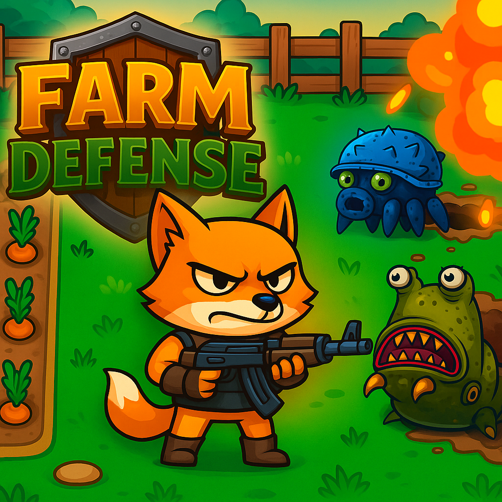 Farm Defense is a wave-based defense game that takes place on a farm and combines traditional survival, action, and tower defense gameplay. Overcome increasingly difficult waves by guiding your character across the terrain, picking up items, and using tactics.